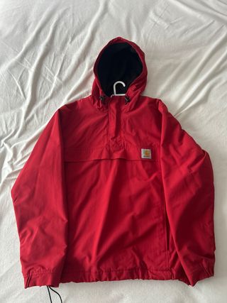 Chaqueta anorak Carhartt de color rojo, con capucha y bolsillo frontal. - Cualquier duda escribenos