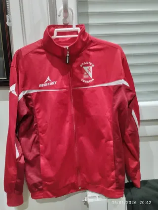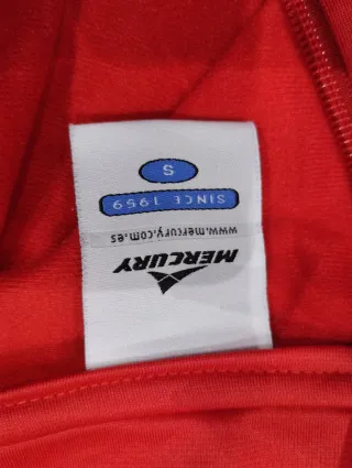 Chaqueta deportiva roja con detalles blancos. - Cierre de cremallera frontal. - Cuello alto. - Logo de Mercury en el pecho izquierdo. - Escudo de Stadium Venezia en el pecho derecho.