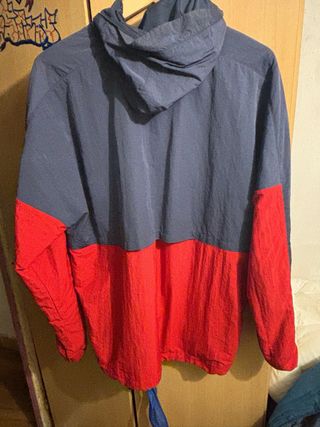 Chaqueta de chico Nike, aunque podría ser unisex, colores azul marino, azulón y rojo, con cremallera, dos bolsillos en el frente con cremallera, talla S Leves brillos en la parte baja trasera y hace como aguas como otro tono, apenas perceptible, de hecho mi hijo se la ponia y no lo había visto hasta ahora q lo miré con mas detenimiento para poner el anuncio(ver última foto), por lo demás en perfecto estado. Es muy bonita y favorecedora, mi hijo la quita pq ha echado cuerpo y le queda muy justa