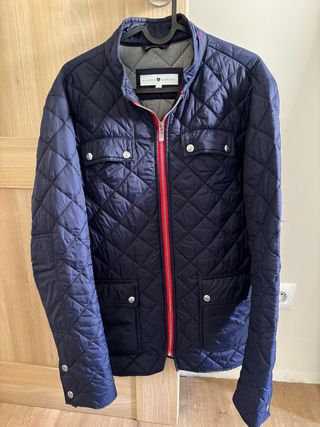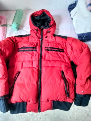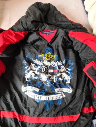 Cazadora Tommy Hilfiger de color rojo con poco uso - Forro interior a rayas. - Cuello Puños con correas