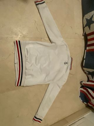 Conjunto deportivo de dos piezas. - Chaqueta con cremallera completa. - Pantalón con detalles de rayas. - Logos de la marca visibles. Esta nuevo nuevo podeis verlo cuando querais Todo el conjunto 80€ Parte abajo 40€ Parte arriba 40€