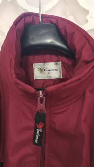Chaqueta Cortaviento deportiva Cantazana Talla XL Vendo chaqueta deportiva de la marca Cantarana, color rojo granate con detalles en negro. Es ligera, cómoda y con cierre completo de cremallera. Ideal para uso diario, deporte o entretiempo. - Medidas reales Pecho: 60 cm Largo: 75–80 cm Manga larga (holgada y cómoda) Equivale a una XL amplia / XXL según preferencia de ajuste. ✔ Color rojo granate ✔ Cremallera completa ✔ Dos bolsillos delanteros ✔ Puños elásticos ✔ Tela ligera y cortaviento