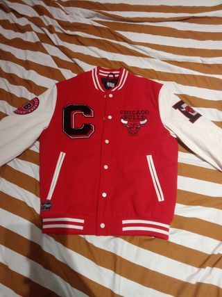 Chaqueta estilo varsity de los Chicago Bulls. - Diseño clásico con mangas de diferente color. - Logo bordado en el pecho. -100% original -Semi nueva ya que se a usado en 4 ocaciones😁