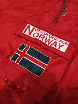 Chaqueta de invierno Geographical Norway con un diseño moderno y cálido. - Capucha con ribete de pelo sintético. - Bolsillo frontal con el logo de la marca y la bandera de Noruega. - Detalle de cremallera roja en el lateral de la manga.