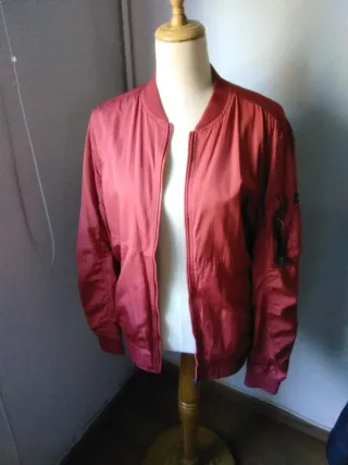 Chaqueta estilo bomber de la marca Pull&Bear. - Color rojo intenso. - Diseño moderno y versátil. - Cremallera frontal. - Bolsillo en la manga. Está nueva no tiene ningún eso, guardada en el ropero. En perfecto estado.