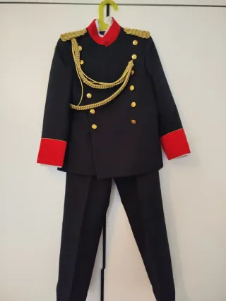 Traje de comunión con uniforme de Guardia Civil. Se encuentra en muy buen estado. Color azul marino y rojo Regalo cordón (cafetera) Talla 8 - Chaqueta medidas Hombros 32cm Largo manga 46cm Largo espalda 52cm Ancho pecho 38cm - Pantalón 29cm cintura (con dos pequeños elásticos) Largo 73cm (puede sacarse 7cm)