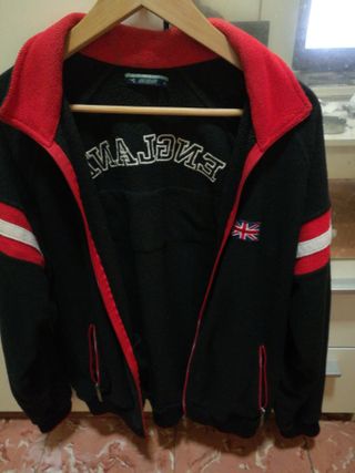 Chaqueta deportiva con detalles en contraste. - Cierre de cremallera. - Cuello alto. - Bolsillos laterales con cremallera. - Diseño con franjas en las mangas. - Insignia de la Union Jack en el pecho.