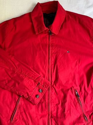 Chaqueta Tommy Hilfiger original de color rojo. En perfecto estado estético. Poco uso. Forro de franela grueso. Prenda que abriga bien. Calidad Tommy Hilfiger. Medidas: - Hombros: 50cm - Largo: 64cm - Manga: 60cm - Cintura: 50cm - Cierre de cremallera. - Bolsillos laterales con cremallera. - Puños con botones.