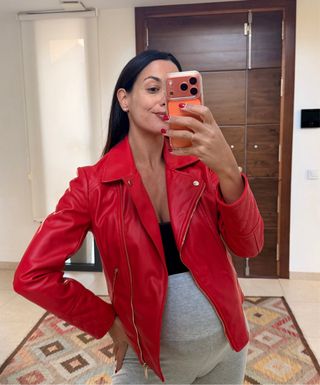 Cazadora tipo biker roja de Woman (El Corte Inglés). Talla XS. Efecto piel, cremalleras doradas y mangas acolchadas. En muy buen estado, apenas usada. Entrega en mano o envío por Wallapop.