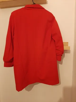 Chaqueta de corte oversize en color rojo. Presenta un diseño clásico con solapas y cierre de doble botón,da bastante talla. - Dos bolsillos frontales. - Forro interior. - Manga larga.