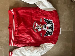 Chaqueta estilo universitario de la marca Chico Malo. - Cuerpo principal en color rojo. - Mangas en color azul marino. - Cuello y puños con detalles de rayas blancas y rojas. - Logo LA en el pecho.