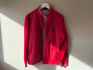 Chaqueta de la marca Tommy Hilfiger en color rojo. - Cuello con detalles de rayas. - Logo de la marca en el pecho. - Cintura elástica. - Puños con detalles de rayas. Con capucha escondida, perfecta para temporal de lluvia o viento