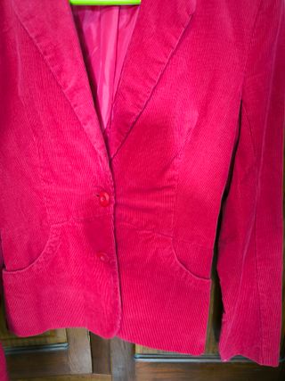 Chaqueta corta de color rojo. - Diseño de doble botonadura. - Cuello solapa. - Bolsillos frontales. - Puños abotonados. - Estado: Usada pero en perfecto estado, muy bien cuidada. - Medidas exactas (ver fotos): Hombros: 35 cm De axila a axila: 45 cm Largo total: 51 cm #ChaquetaRoja #EasyWear #ElCorteIngles #BlazerRoja #ModaMujer #ChaquetaCorta #Talla40 #RedJacket #OcasiónEspecial #Streetwear #LookOficina #RojoVibrante 202