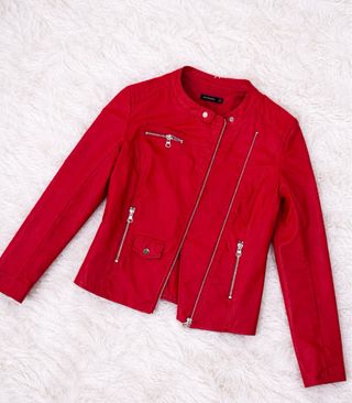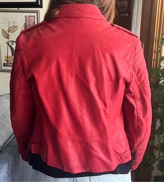 Chaqueta roja estilo motero.