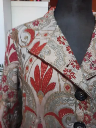 Elegante chaqueta con un estampado vintage. Tela gruesa y forrada. - Diseño con solapas clásicas. - Cierre de botones. - Bolsillos frontales.
