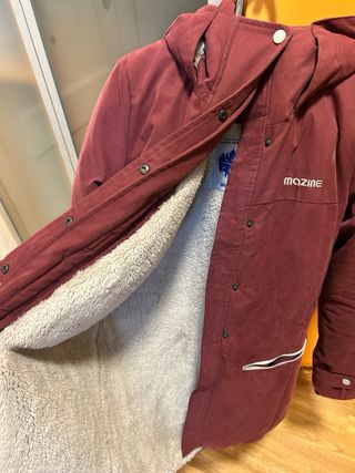 Chaqueta de la marca MAZINE en color rojo. - Diseño con capucha. - Cierre de botones a presión. - Bolsillos frontales con ribete. -Dice L pero entra perfecto en una S