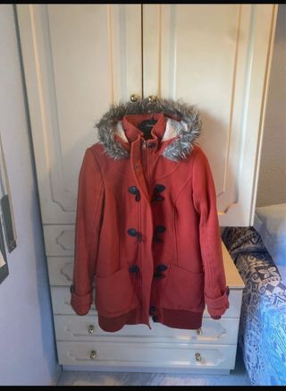 Chaqueta de invierno en color rojo, con capucha y detalle de pelo. - Cierre de cremallera. - Cordón ajustable en la cintura. - Bolsillos laterales.