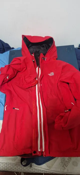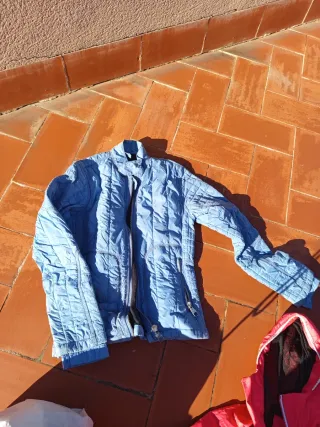 4 Chaquetas de Decathlon para niños de 9 a 10 años. Es una prenda versátil y cómoda. Una gris y otra roja impermeables. Una azul acolchada para frío Un para viento rojo naranjado Cada una 8 euros Las 4 por 30 - Diseño con capucha. - Forro interior de color turquesa. - Cierre de cremallera frontal.