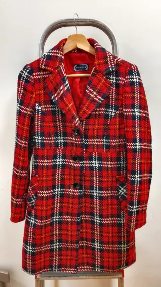 Elegante abrigo de cuadros con un diseño clásico y llamativo. Perfecto para añadir un toque de estilo a cualquier conjunto. - Diseño de cuadros en rojo, azul marino y blanco. - Cierre de botones. - Bolsillos frontales. Abrigo gabardina rojo a cuadros de mujer, elegante, clasico, invierno, navidad. Con bolsillos, con botones. Vintage. Regalo madre, amigo invisible, navidad. Marca italiana, Chopin Roma. Chaqueta mujer. Anorak. Gabardina. #Frio #nieve #aesthetic #moda #italian