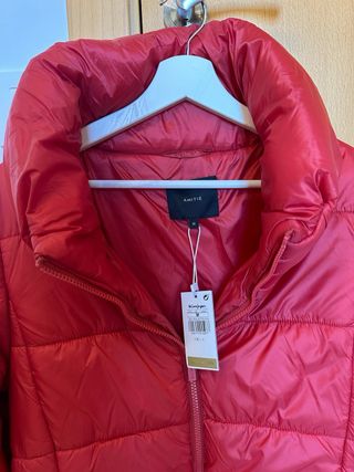 Chaqueta acolchada de color rojo, con un diseño moderno. Marca AMITIÉ, de El Corte Inglés. NUEVA, CON ETIQUETA.