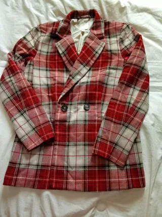 Conjunto de chaqueta y falda de H&M con estampado tartán.poco uso - Chaqueta de corte clásico. - Falda a juego. - Diseño a cuadros en tonos rojos y beige. -tallaje hasta la S