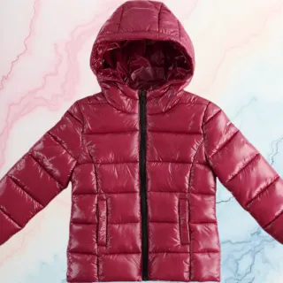 Chaqueta acolchada brillante para niña. - Diseño moderno y llamativo. - Cuello alto. - Puños y bajo con banda elástica a rayas.