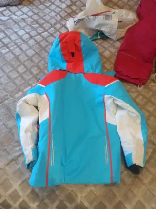 Contacto por whatsapp o llamar 667240889 Chaqueta de esquí para niños y niñas, con un diseño llamativo en azul y rojo. - Capucha integrada. - Cremallera frontal. - Bolsillos laterales con cremallera. Talla 128 Edades- 6-7-8-9 años depende la estatura del niñ@. Como nuevo, utilizado 2 veces Impermeable