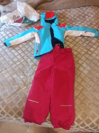 Conjunto de esquí para los más pequeños, perfecto para disfrutar de la nieve con comodidad.talla 4/6 años Medidas.40 de sisa 40 manga 40 cuerpo. Pantalón 85 con el peto 40 cadera 25 cintura regulable.se puede adaptar con velcro. - Pantalón de esquí con tirantes. - Chaqueta de esquí a juego. - Diseño moderno y funcional.