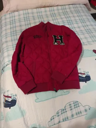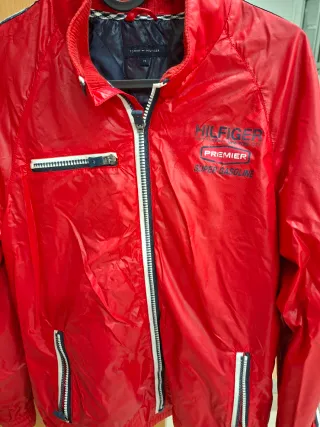 Chaqueta deportiva Tommy Hilfiger talla 14 en color rojo. - Diseño con cremallera frontal. - Bolsillos con cremallera. - Logo Hilfiger Premier Super Gasoline en el pecho.