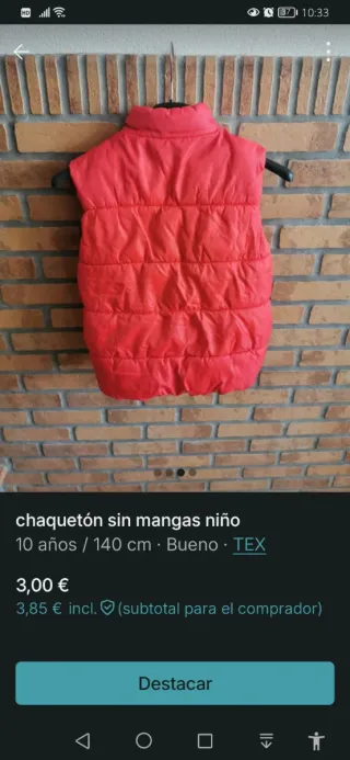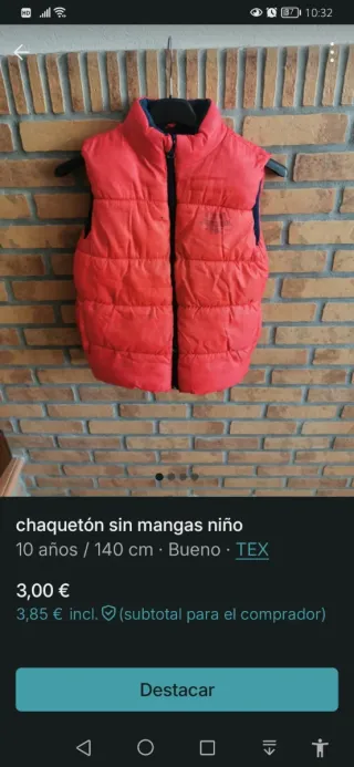 Chaqueta sin mangas niño TEX roja talla 7/8