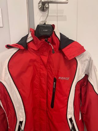 Chaqueta roja de la marca Norway para niño. Está en buen estado. - Con capucha. - Forro de piel sintética en la capucha. - Bolsillos funcionales. Talla de niño 12-14 en perfectas condiciones muy poco uso costó 180€ se se vende por 60€