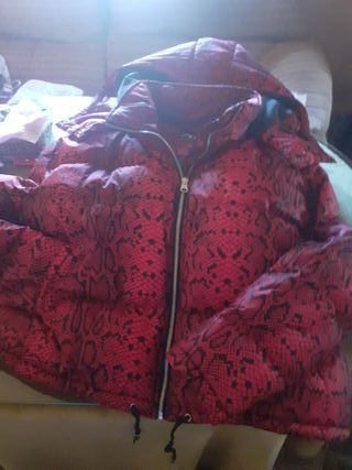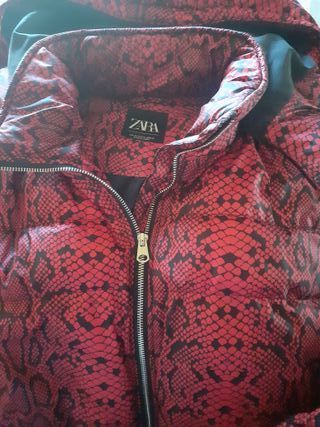 Chaqueta acolchada roja con estampado en piel de serpiente, capucha desmontable, bolsillos y cuerdas para ajustar en la cintura. Abrigada y cálida para el invierno pero no pesa nada, muy cómoda. De la marca Zara, usada sólo dos veces, está intacta. Talla M aunque da bastante de si, hasta una XXL (44). Hombros 52 cm, axilas 52, cintura 50, largo 62. #animalprint #abrigomujer #abrigoinvierno #acolchada #plumasmujer #plumasligero #serpent #snake #rock
