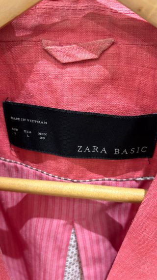 chaqueta de tejido sedoso de Zara, roja. sin estrenar con etiqueta. es talla 36/38 real - Diseño de doble abotonadura. - Dos bolsillos frontales con solapa. - Cuello de solapa clásico.