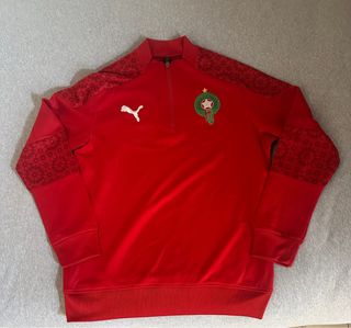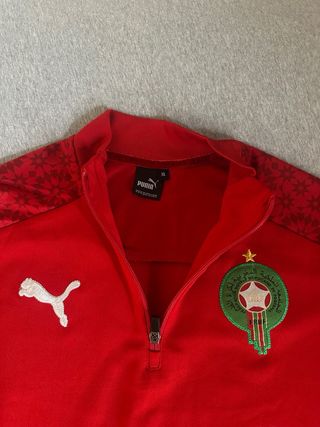 Chaqueta deportiva de Marruecos con el logo de Puma. - Diseño con cuello alto y media cremallera. - Detalles estampados en hombros y mangas. - Escudo de Marruecos bordado en el pecho.