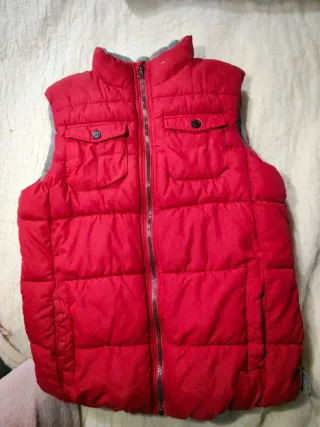 Chaleco acolchado rojo y gris