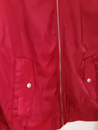 Chaqueta acolchado roja,corta. Bolsillos con cremalleras invisibles. Queda muy bonita puesta.