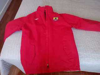 Chaqueta deportiva de la Penya Anguera. - Color rojo vibrante. - Logo de la Penya Anguera en el pecho. - Cierre de cremallera frontal. - Bolsillos laterales.