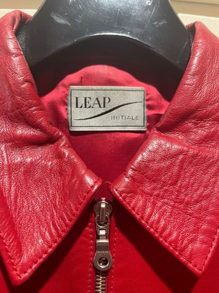 Chaqueta de cuero de la marca LEAP en un vibrante color rojo. Un clásico que aporta estilo. - Cierre frontal con cremallera. - Dos bolsillos delanteros con cremallera.