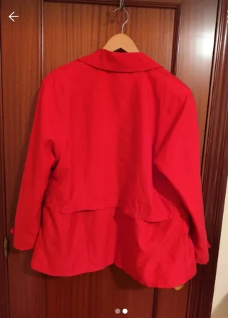 Chaqueta de color rojo de la marca Honda. Impermeable, bolsillos frontales y larga (tipo gabardina). Medidas: Largo 85 Ancho 60 Mangas 60 No tiene defectos, solo desgaste que se aprecia en las fotografias.