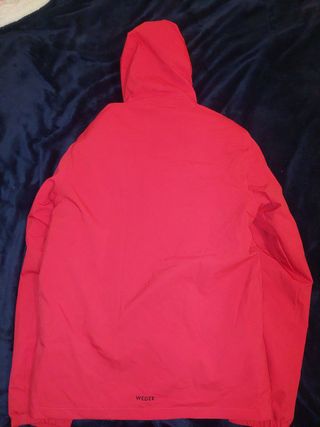 Chaqueta de estilo anorak con capucha. - Diseño con bolsillo frontal. - Parche de la marca en el pecho. - Bandera de Noruega en la parte frontal. Poco usada. Unisex. Abriga mucho, perfecta para invierno. Hay una cremallera en el lateral para ponértela. También tiene un bolsillo grande en el centro. Muy cómoda.