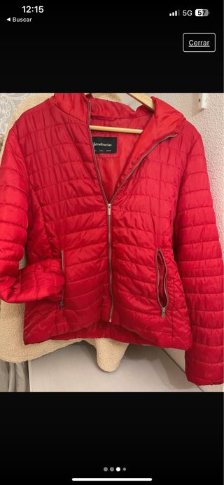 Anorak bomber Stradivarius, plumífero rojo intenso. Acolchadito y muy calentito. Chaqueta ligera y cómoda. De muy fácil lavado. Marca Stradivarius Talla S Perfecto estado.