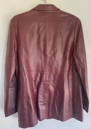 Chaqueta larga, color rojo oscuro. De viscosa y lino, de verano. Zara, talla M. Usada solo una vez