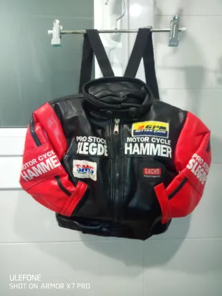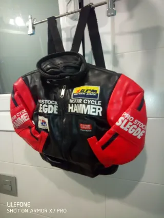 Mochila con diseño inspirado en chaquetas de motociclista. Es pequeña , para llevar pocas cosas , pero las tiras ajustan a tod@s 😎 - Material: Cuero sintético. - Combinación de colores: Negro y rojo. - Estilo: Biker / Motero.