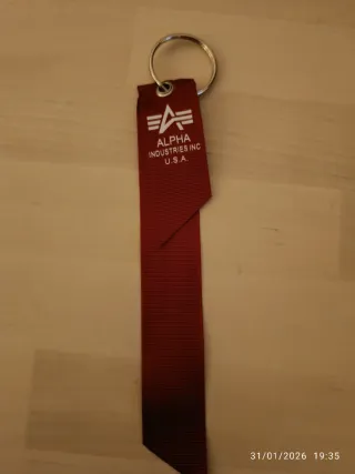 Llavero de tela de Alpha Industries con el icónico mensaje Remove Before Flight. - Diseño en color rojo. - Incluye anilla metálica.