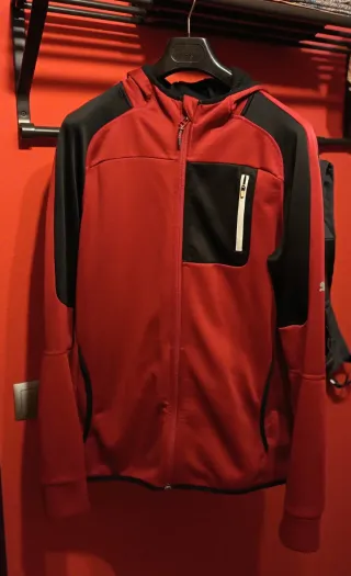 Chaqueta deportiva de color rojo. - Cierre de cremallera frontal. - Cuello alto. - Puños y bajo elásticos. -Muy buen estado - Abriga muchísimo