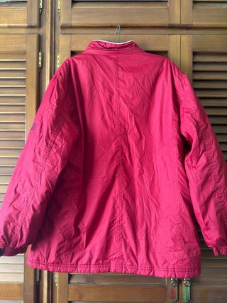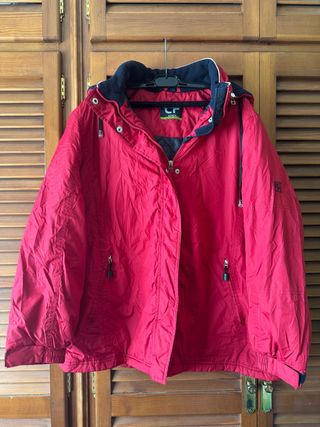 Chaqueta de la marca Klepper en color rojo. - Diseño moderno con detalles en negro. - Cremalleras frontales y en los bolsillos. - Cuello alto con ajuste. - Puños ajustables. tiene una pequeña mancha en el brazo y viene sin capucha . (talla M/L)
