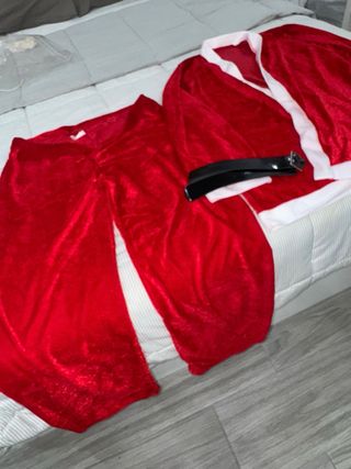 Conjunto de disfraz de Papá Noel para hombre. - Chaqueta roja con ribete blanco. - Pantalón rojo. - Cinturón negro. Talla M (viene un poco grande pero el pantalón es ajustable y la parte de arriba también con el cinturón)
