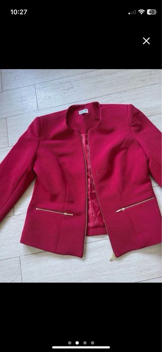 Chaqueta tipo twed en color rojo con bolsillos y cremallera para abrochar Talla 40 Usada un par de veces Regalo falda en color rojo