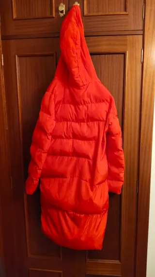 Chaqueta roja acolchada para niña, ideal para el invierno. Está en muy buen estado. - Talla: M (ver etiqueta en la foto) - Con capucha - Cremallera frontal - Bolsillos con cremallera
