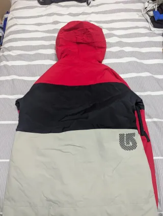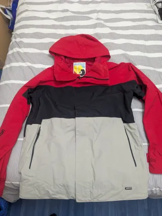 Chaqueta de snowboard Burton con un diseño moderno y funcional. Perfecta para tus días en la montaña. - Diseño tricolor: rojo, negro y beige. - Capucha integrada. - Bolsillos frontales con cremallera.